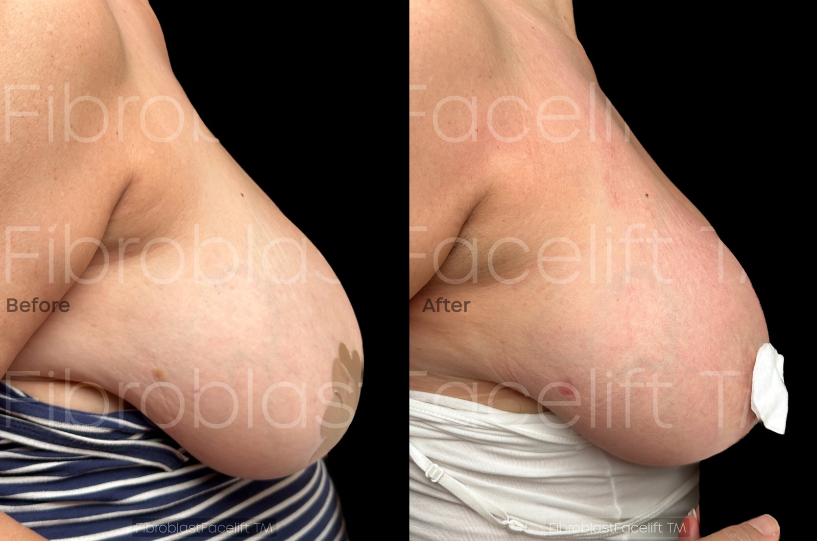 Treats sagging skin on both breasts for stretch marks and sun damage. Treatment area goes to clavicle bone for full coverage excluding (areola, nipple) area.